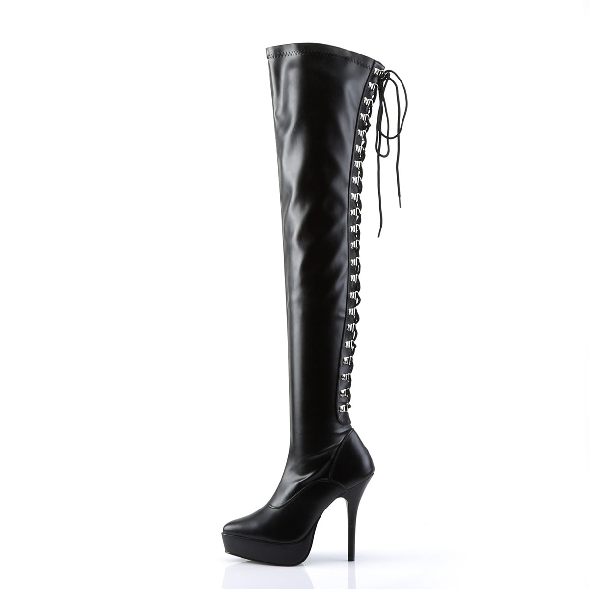 Additional Description 5 1/4"" (13.3cm) Heel, 1 1/4"" (3.2cm) Platform Back Lace Up Stretch Thigh Boot, Full Inner Side Zip Closure