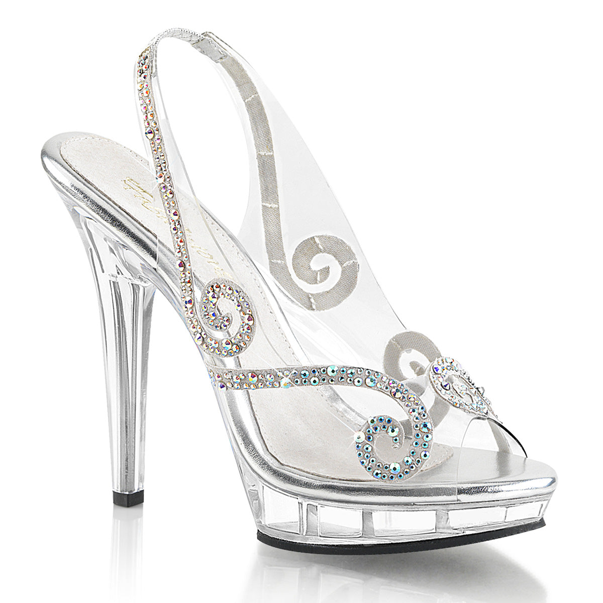 Additional Description 5"" (12.7cm) Heel, 3/4"" (1.9cm) Platform Sling Back Sandal Embellished W/ AB Rhinestones