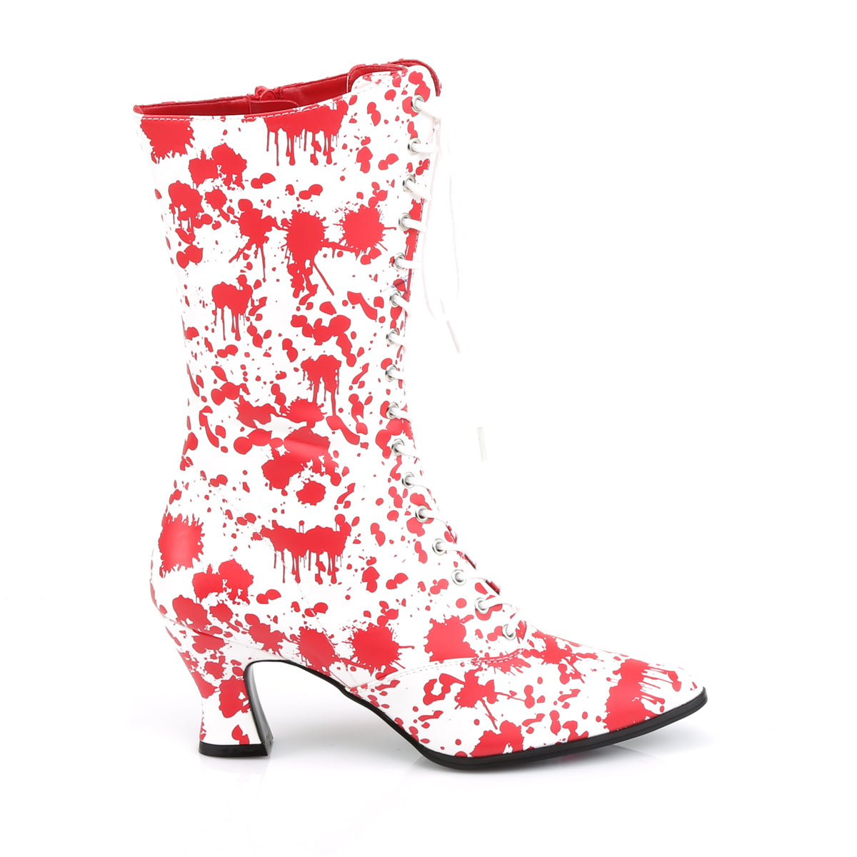 2 3/4"" (7cm) Heel Front Lace Up Mid-Calf Boot Featuring Bloody Print Overlay, Full-Length Inner Side Zip Closure