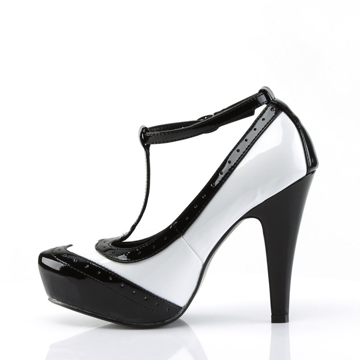 | Additional Description | 4 1/2"" (11.4cm) Heel, 1"" (2.5cm) Hidden Platform T-Strap Spectator Pump |
