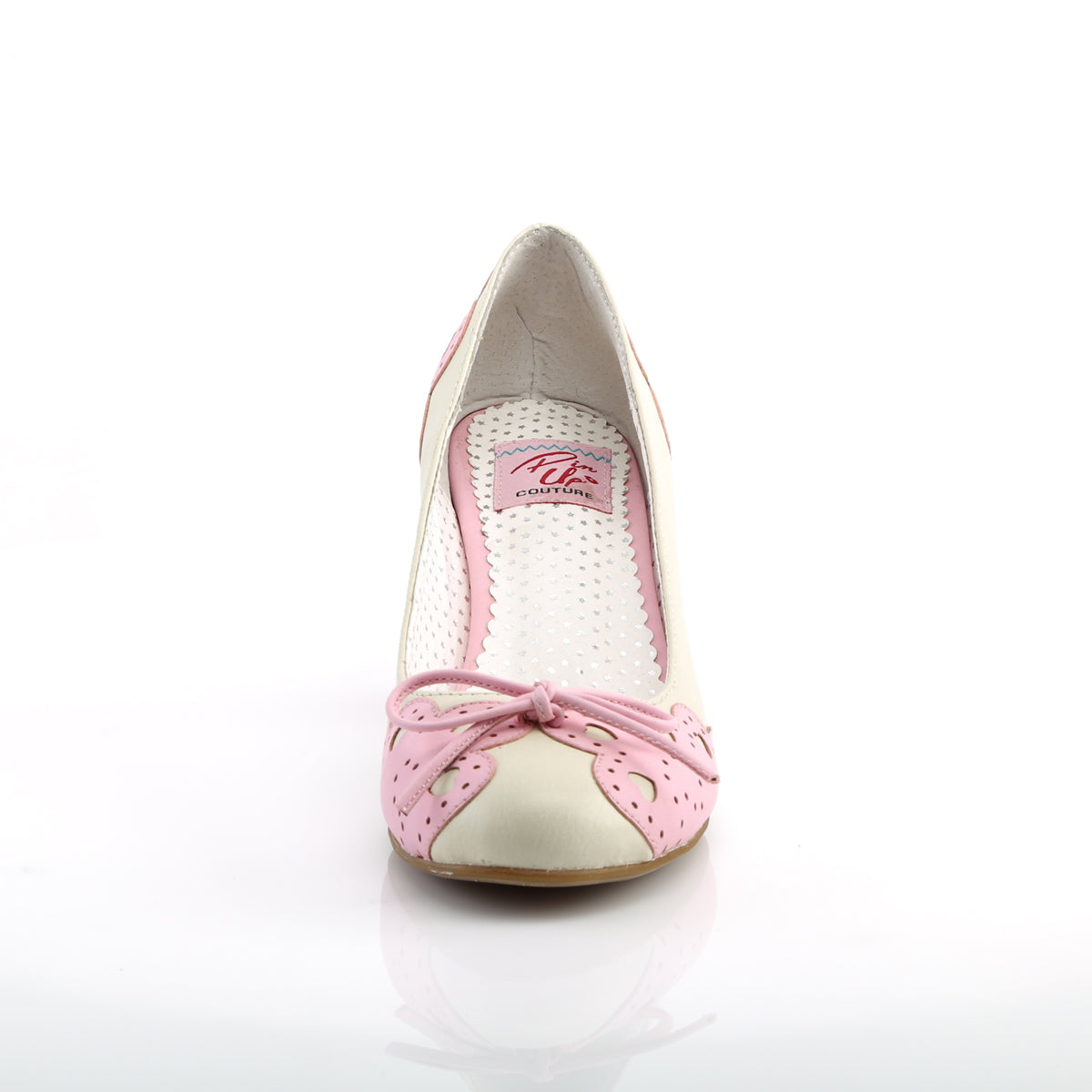 Pin Up Couture Womens Pumps WIGGLE-17 Cream-Pink Faux Leather