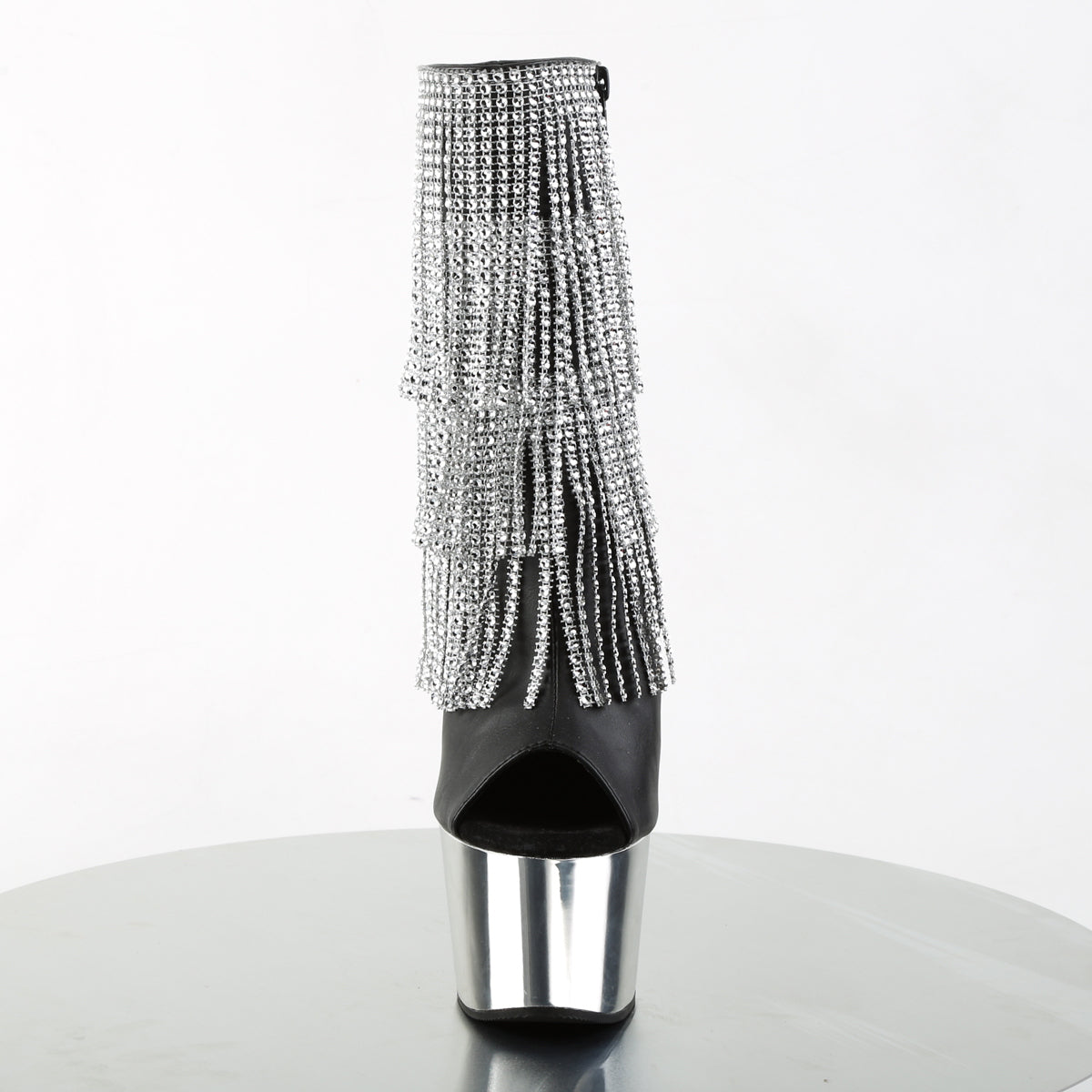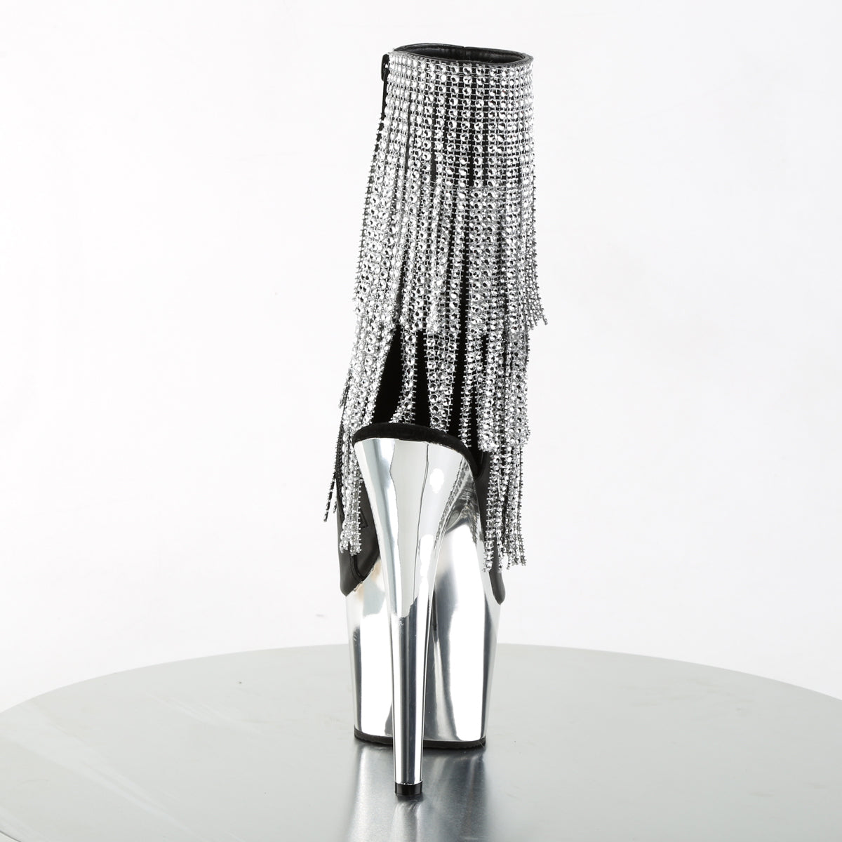 Pleaser Womens Ankle Boots ADORE-1024RSF Blk Faux Leather-Slv/Slv Chrome