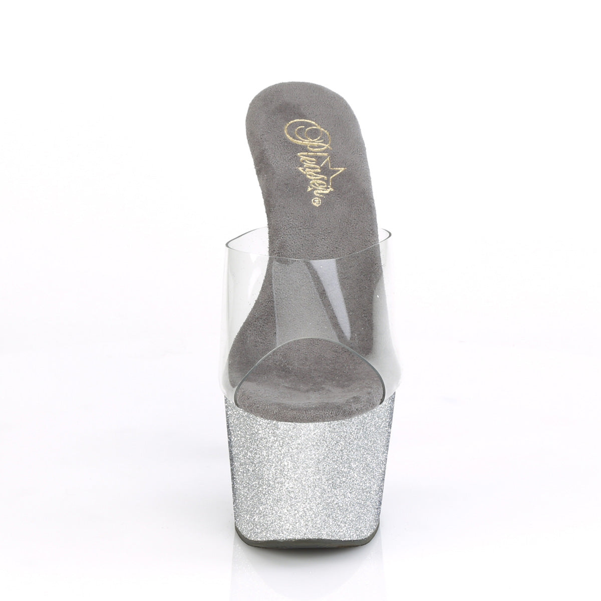 Pleaser Womens Sandals ADORE-701OMBRE Clr/Slv-Blk Ombre Mini Glitter