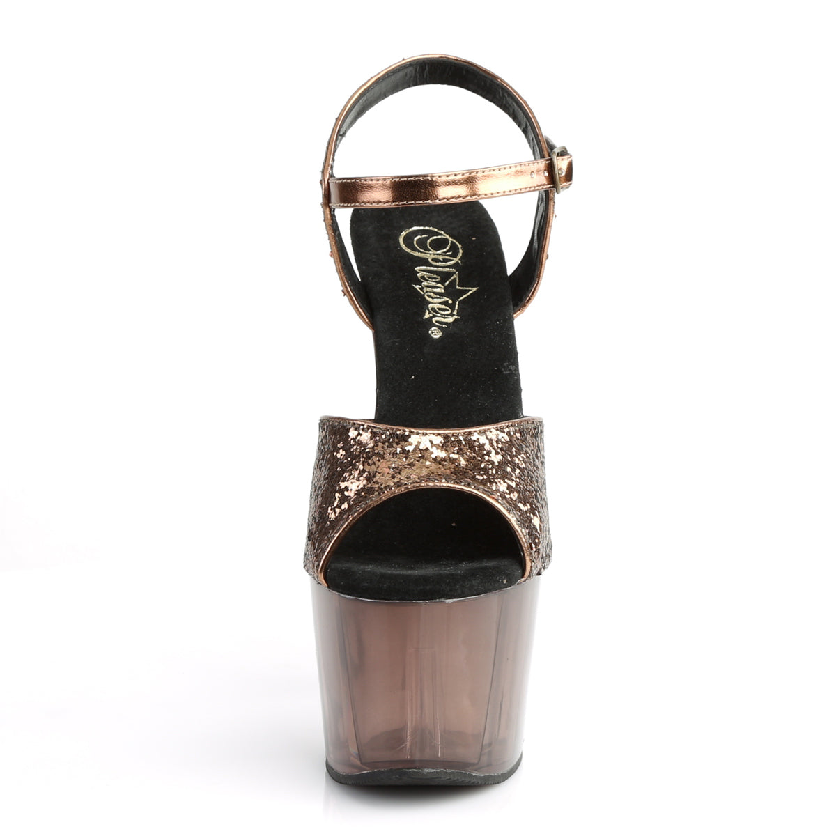 Pleaser Womens Sandals ADORE-710GT Bronze Glitter/Bronze Tinted