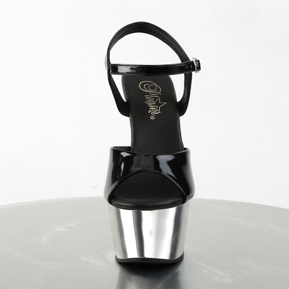 Pleaser Womens Sandals ASPIRE-609 Blk Pat/Slv Chrome