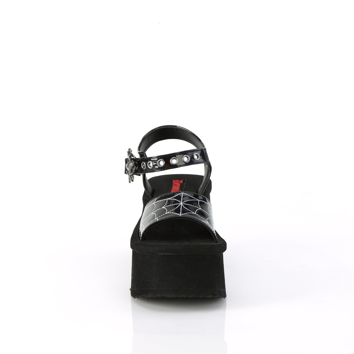 | Description | 2 1/2"" (64 mm) Platform Ankle Strap Sandal, Featuring Silver-Tone Spider Shaped Buckle at Strap & Spider Web Embridoered Vamp |