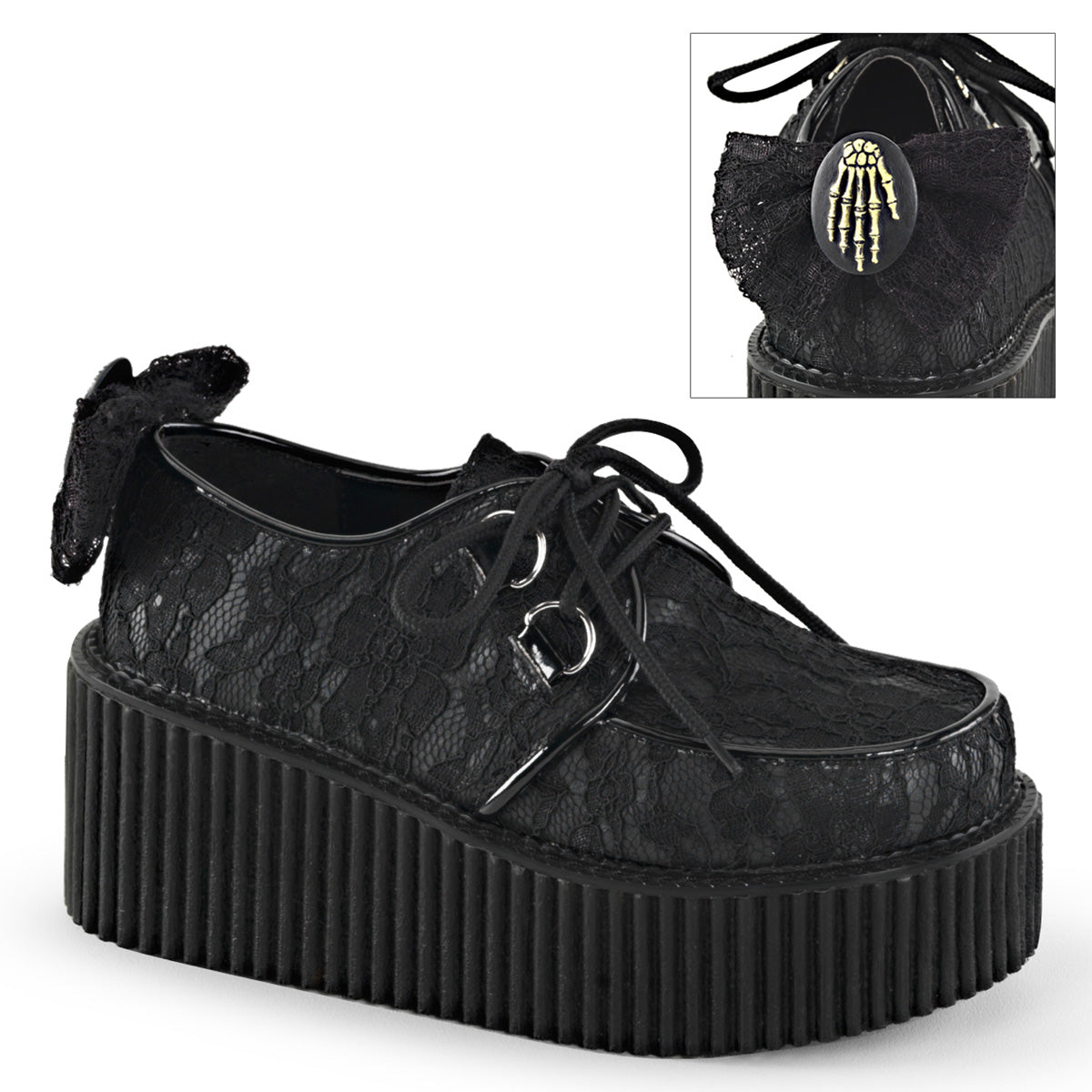 | Additional Description | 3"" (7.6cm) Platform Lace-Overlay Creeper Featuring Lace Bow with Skeleton Hand and D-Ring Lace & Piping Detail |