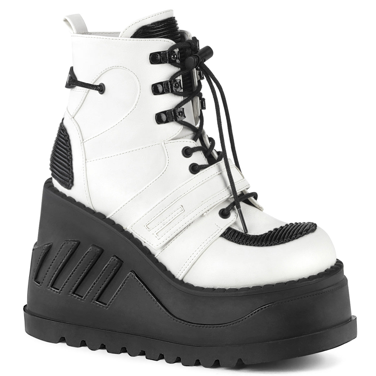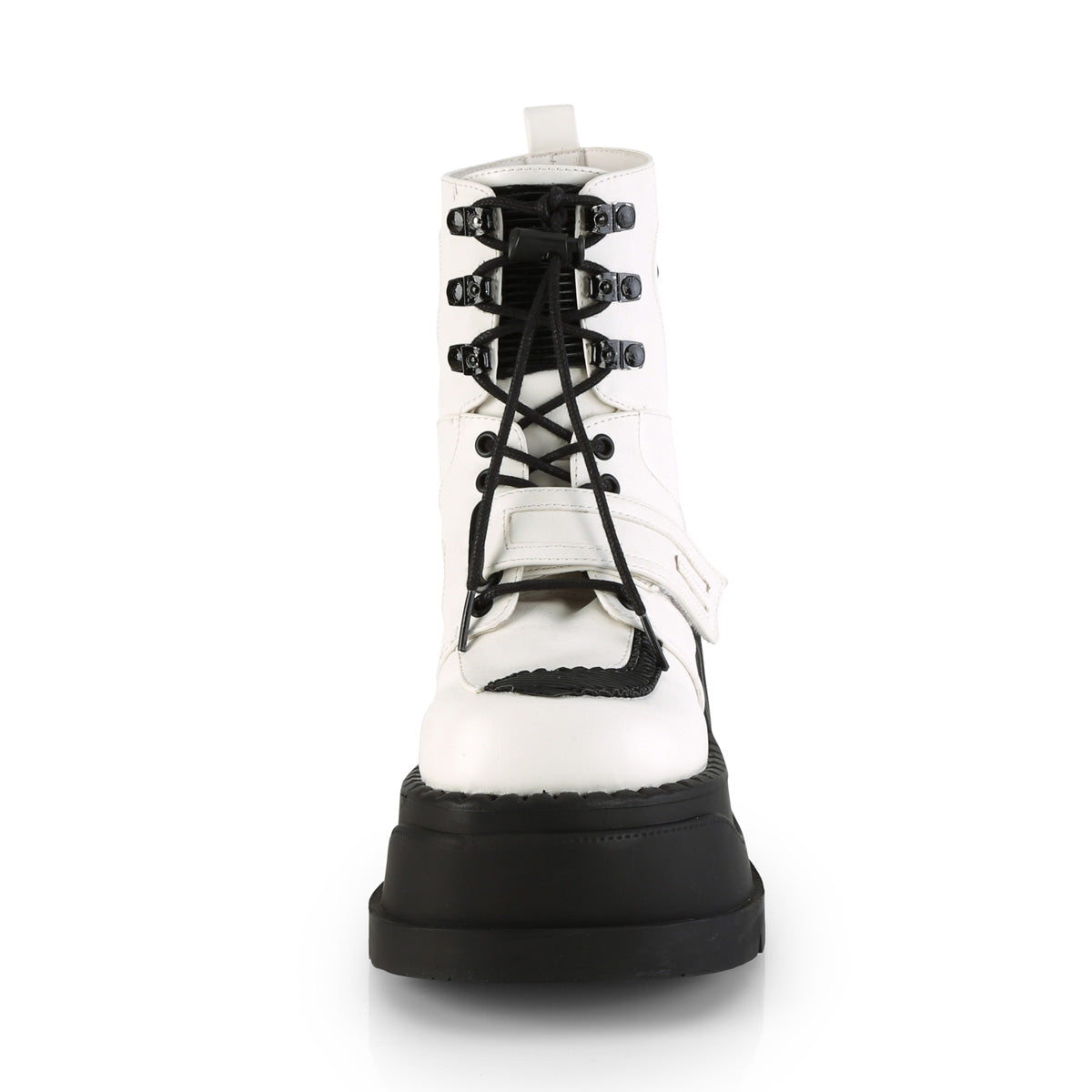 DemoniaCult Womens Ankle Boots STOMP-13 Wht Vegan Leather