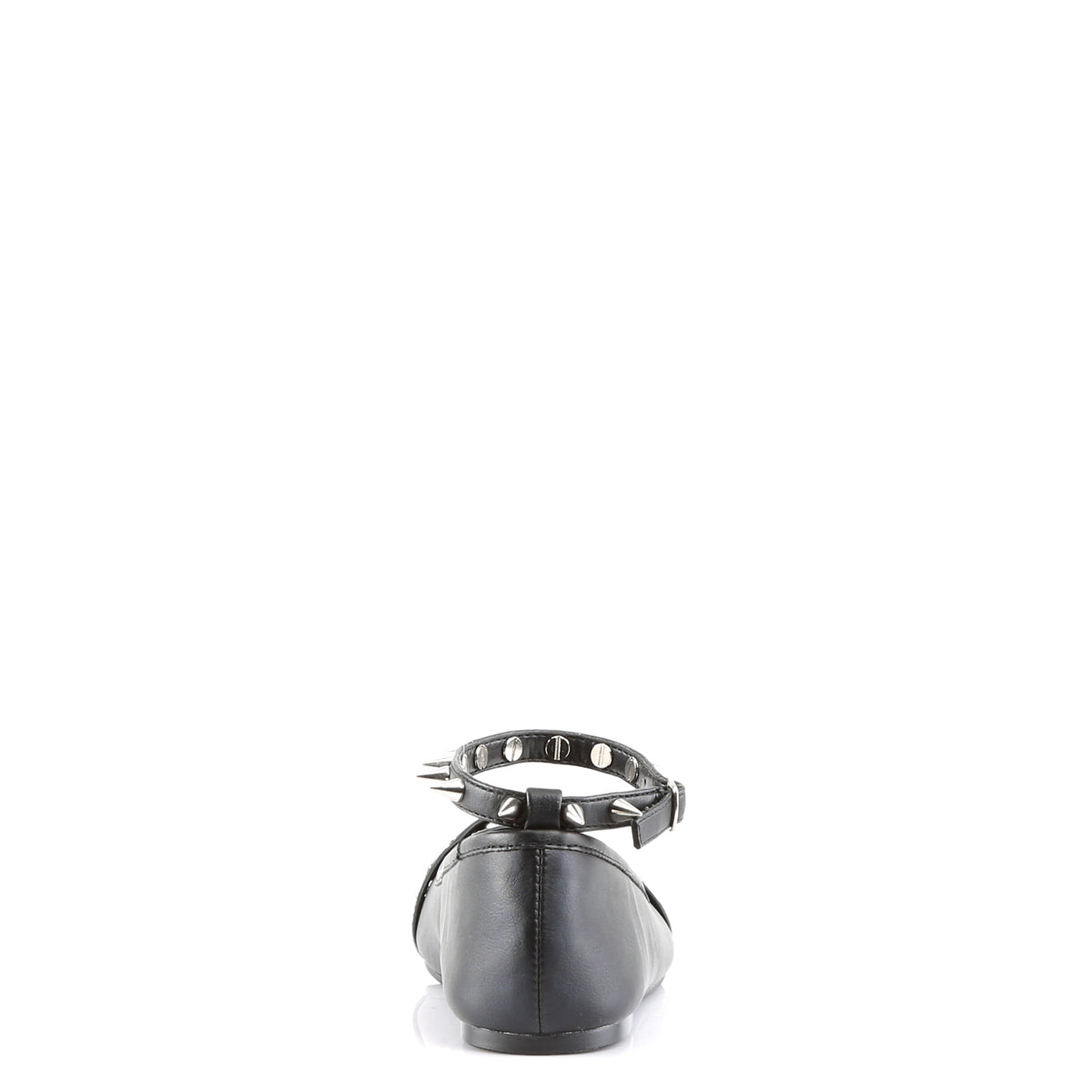 Additional Description Ankle Strap Flat Featuring Studded Straps and Pentagram Ornament on Vamp and Buckle & Spikes Detail