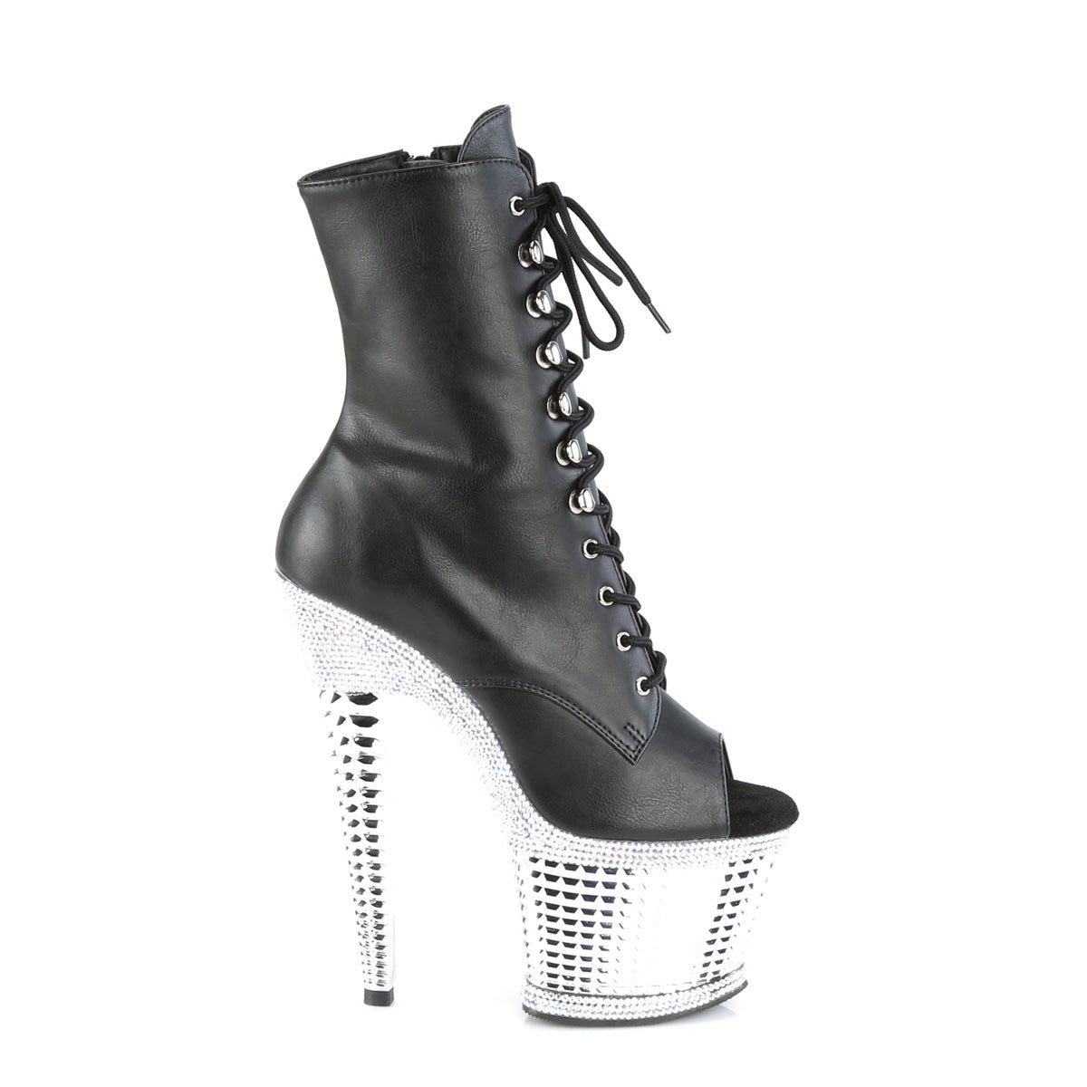 Pleaser Ankle Boots SPECTATOR-1021RS Blk Faux Leather/Slv RS-Chrome