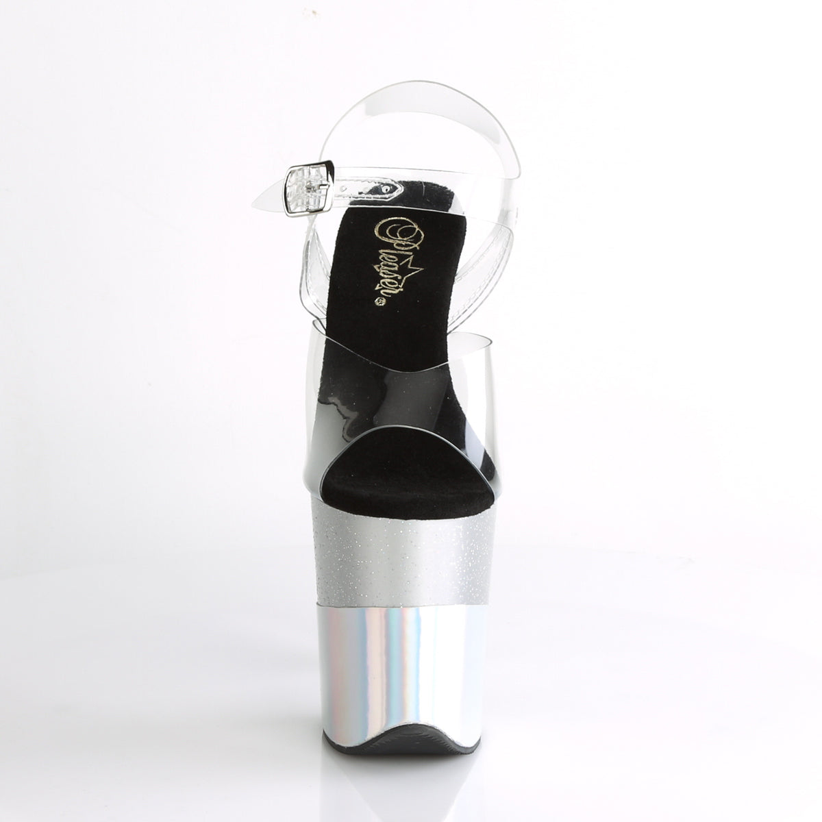 Pleaser Womens Sandals FLAMINGO-808-2HGM Clr/Slv Glitter-Hologram