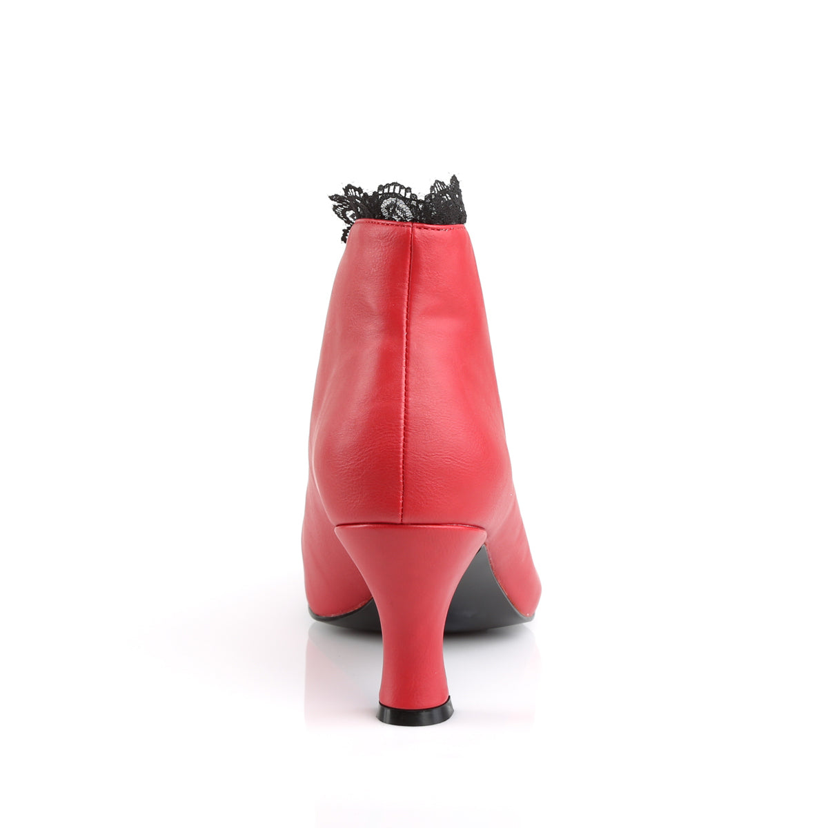 Pleaser Pink Label Womens Pumps JENNA-105 Red Fuax Leather-Blk Lace