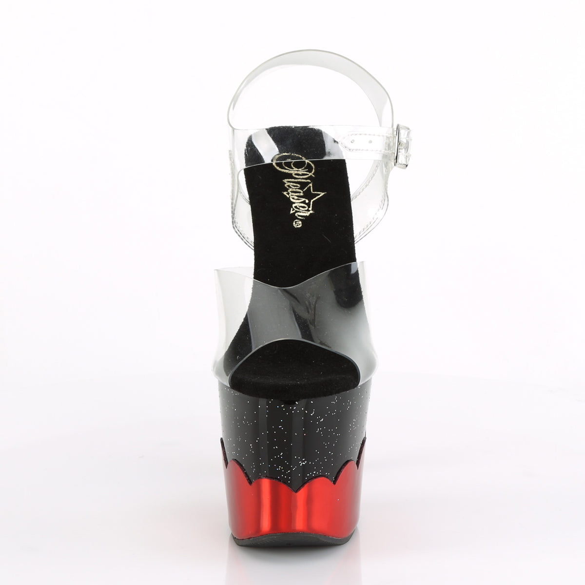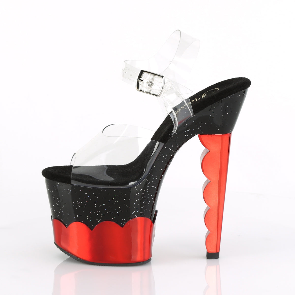 Pleaser Womens Sandals SCALLOP-708-2HGM Clr/Blk-Red Hologram