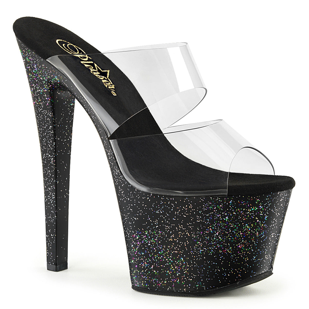7"" (17.8cm) Heel, 2 3/4"" (7cm) Platform Dual Band Slide Featuring Mini Iridescent Glitter on the Entire Platform