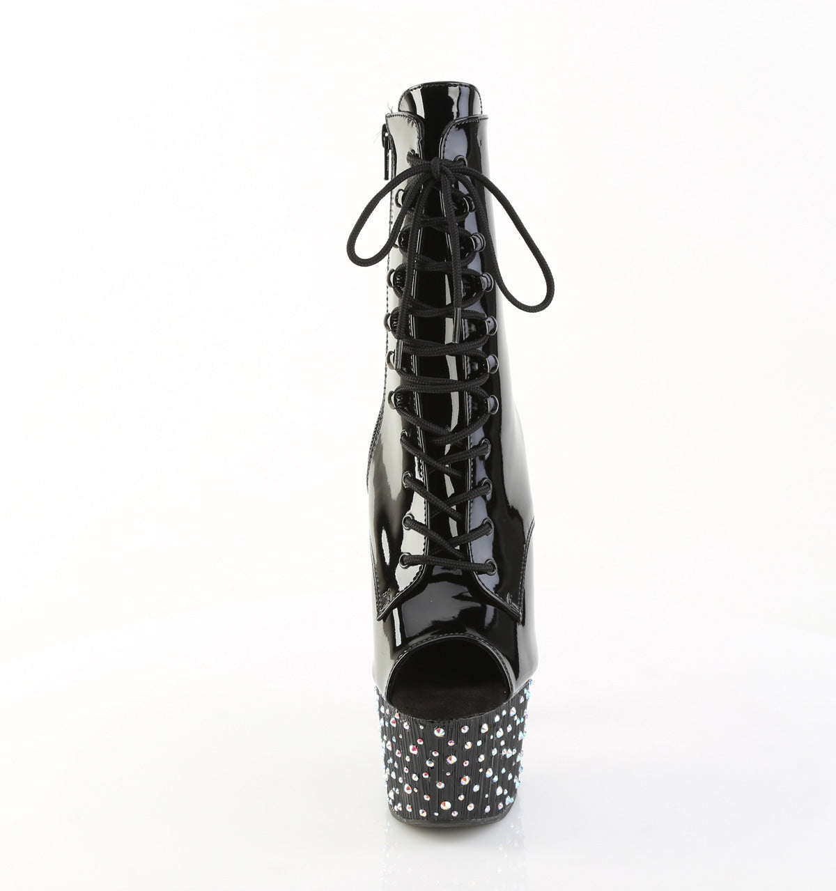 7" Heel, 2 3/4" PF Peep Toe Lace-Up Ankle Boot, Side Zip