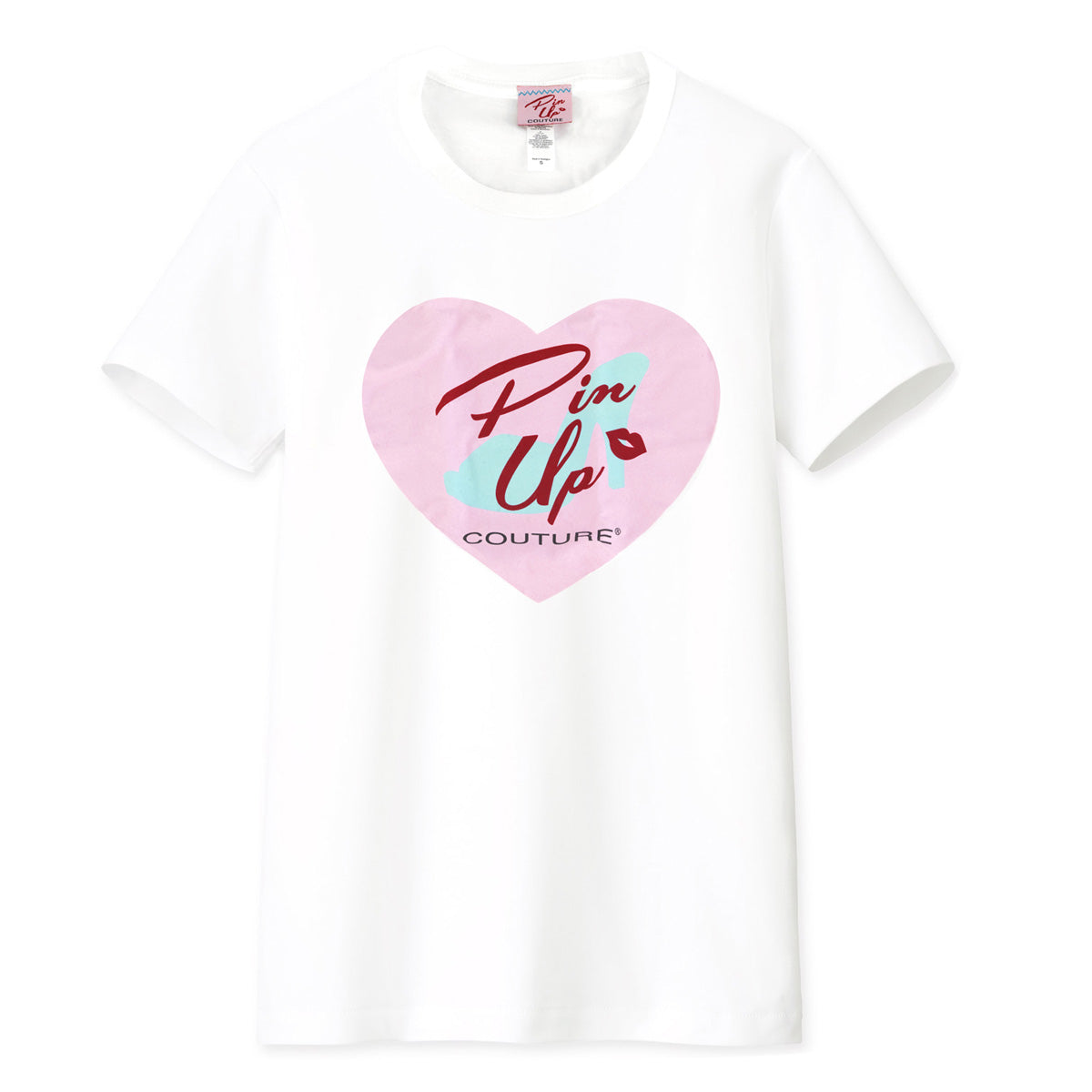Additional Description White Silkscreen T-Shirt with Pink Heart & PINUP COUTURE Logo,Size: S(8-9), M(10-11), L(12-13), XL(14)
