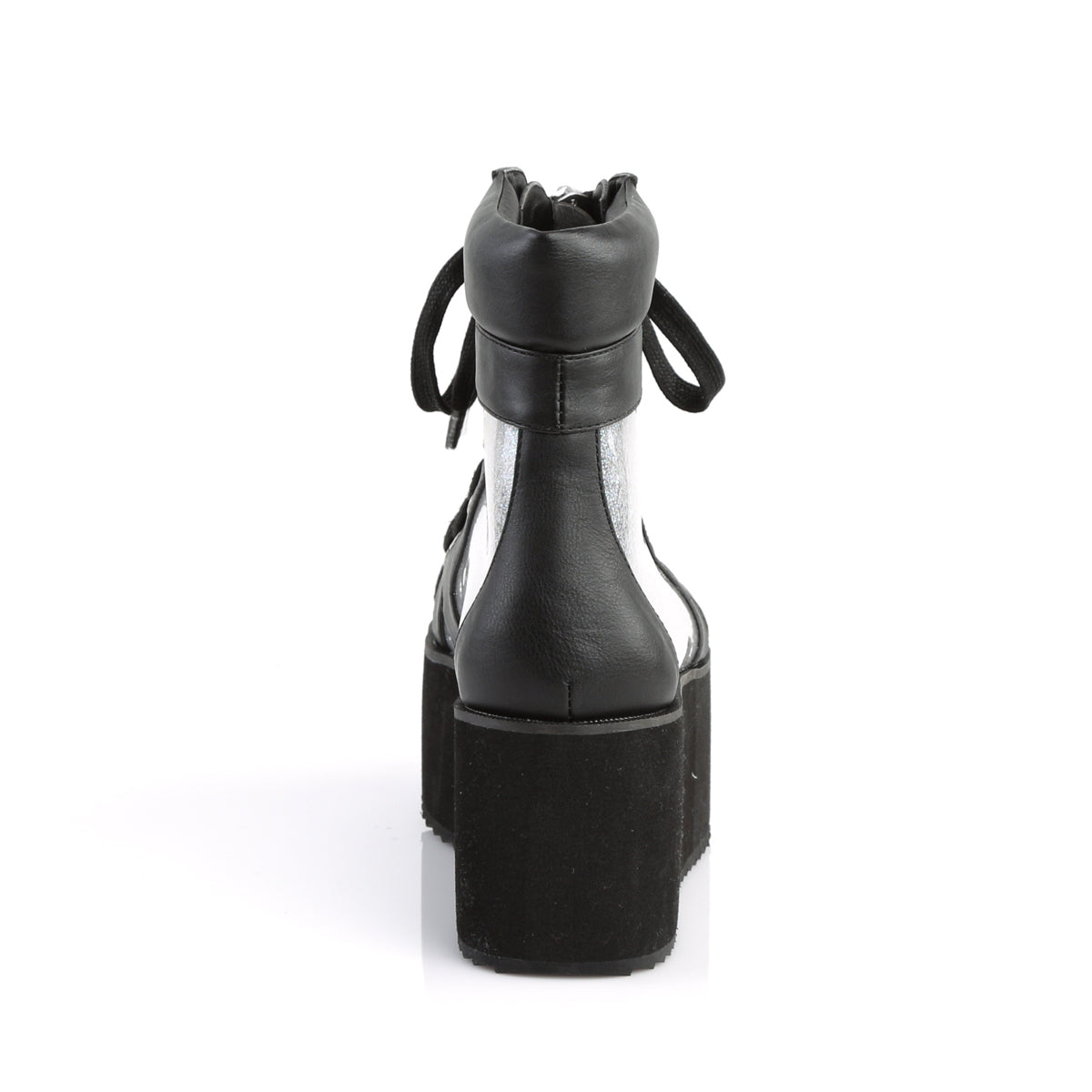 Name DemoniaCult Womens Ankle Boots GRIP-102 Blk Vegan Leather-Clr Hologram TPU