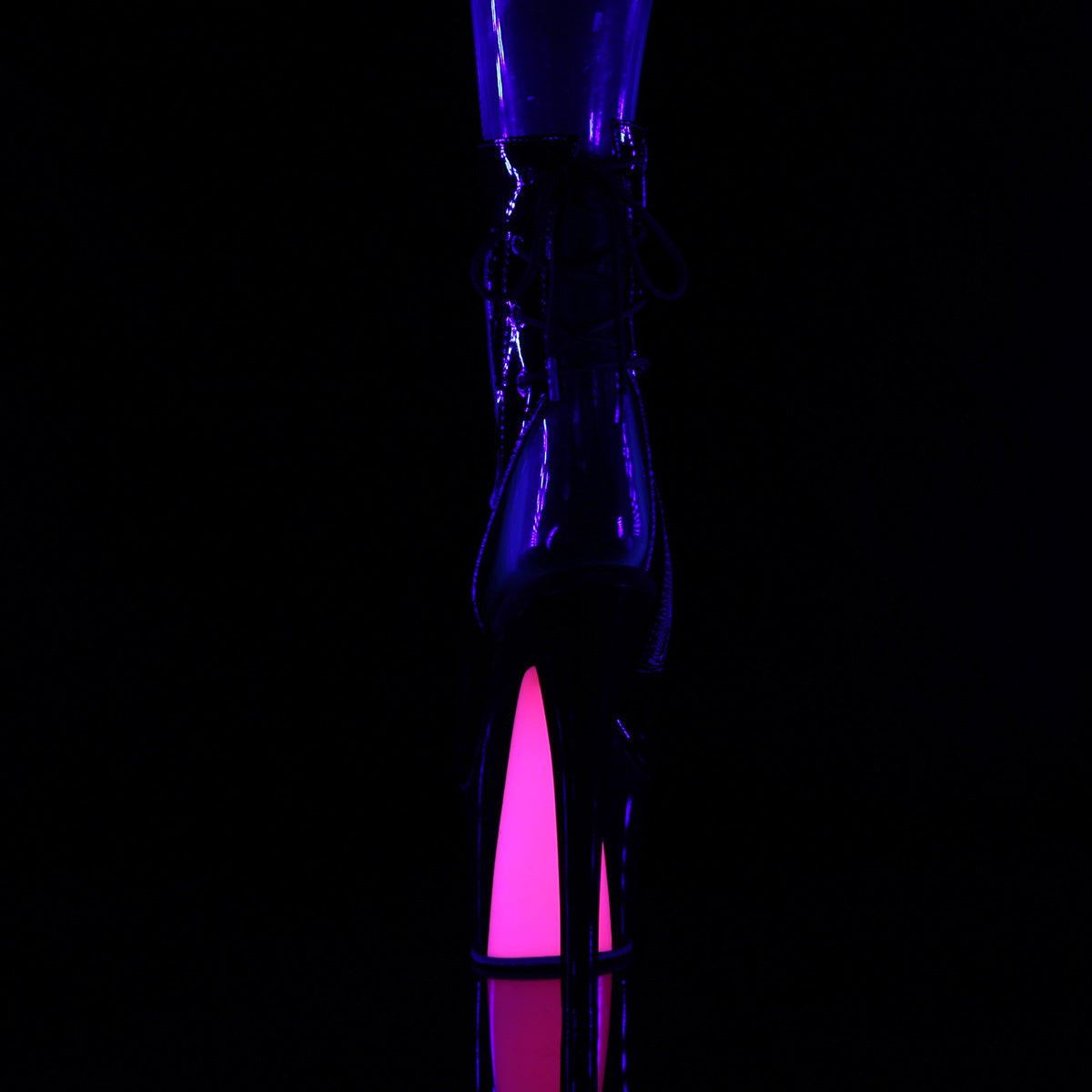 Pleaser Womens Ankle Boots SKY-1018TT Blk Pat/Blk-Neon H. Pink