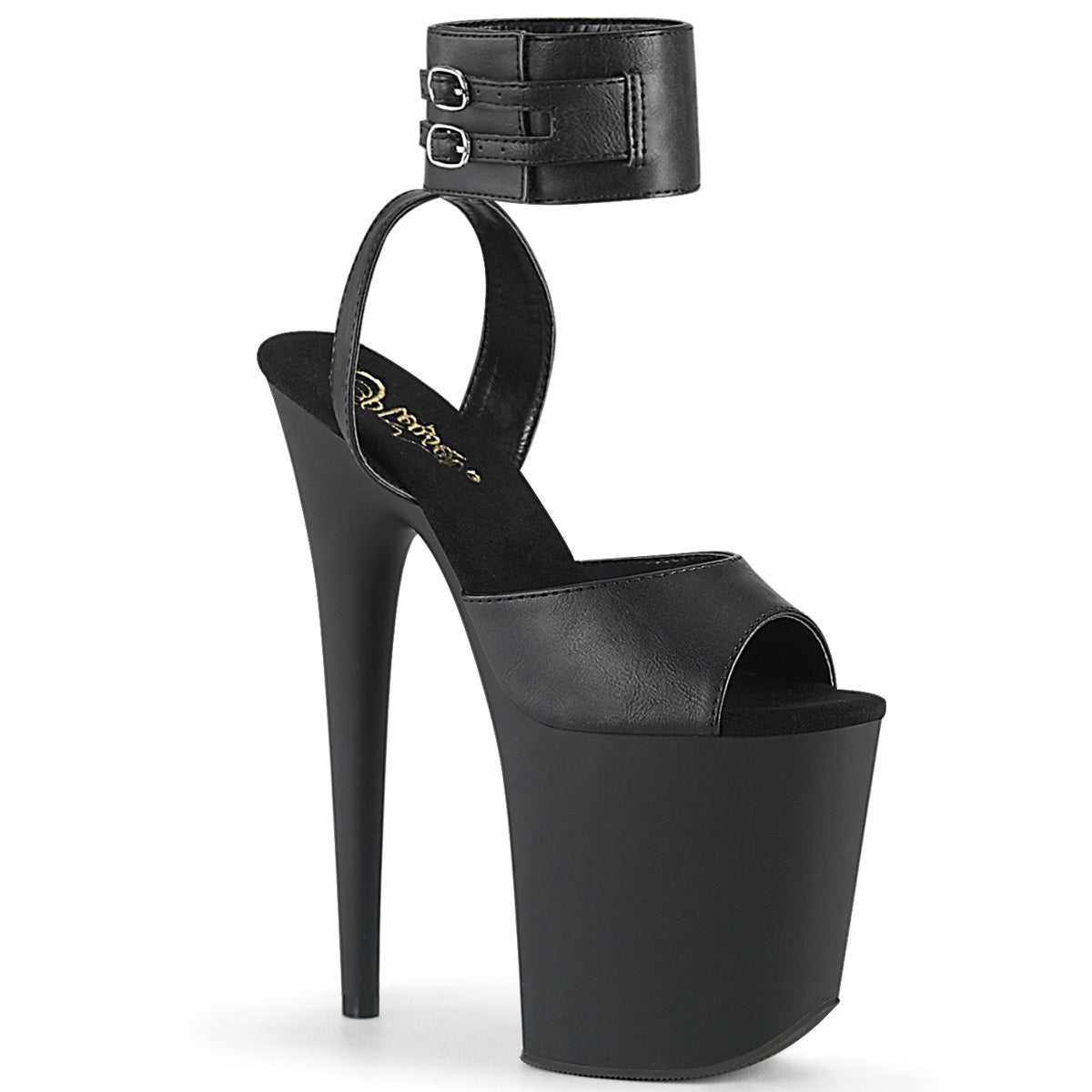Additional Description 8"" (200mm) Heel, 4"" (100mm) Platform Ankle Strap Sandal Featuring Wide Ankle Band w/ Dual Buckle Straps
