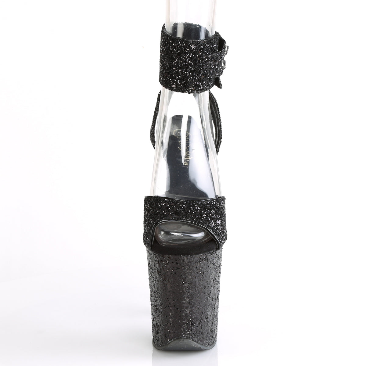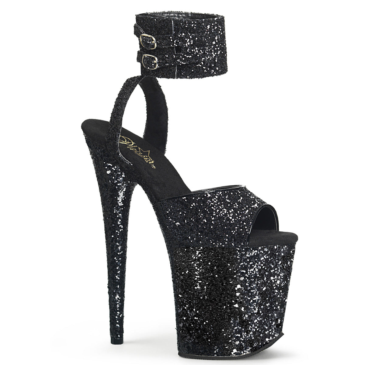 | Additional Description | 8"" (200mm) Heel, 4"" (100mm) Platform Glitter Ankle Strap Sandal Featuring Wide Ankle Band w/ Dual Buckle Straps |