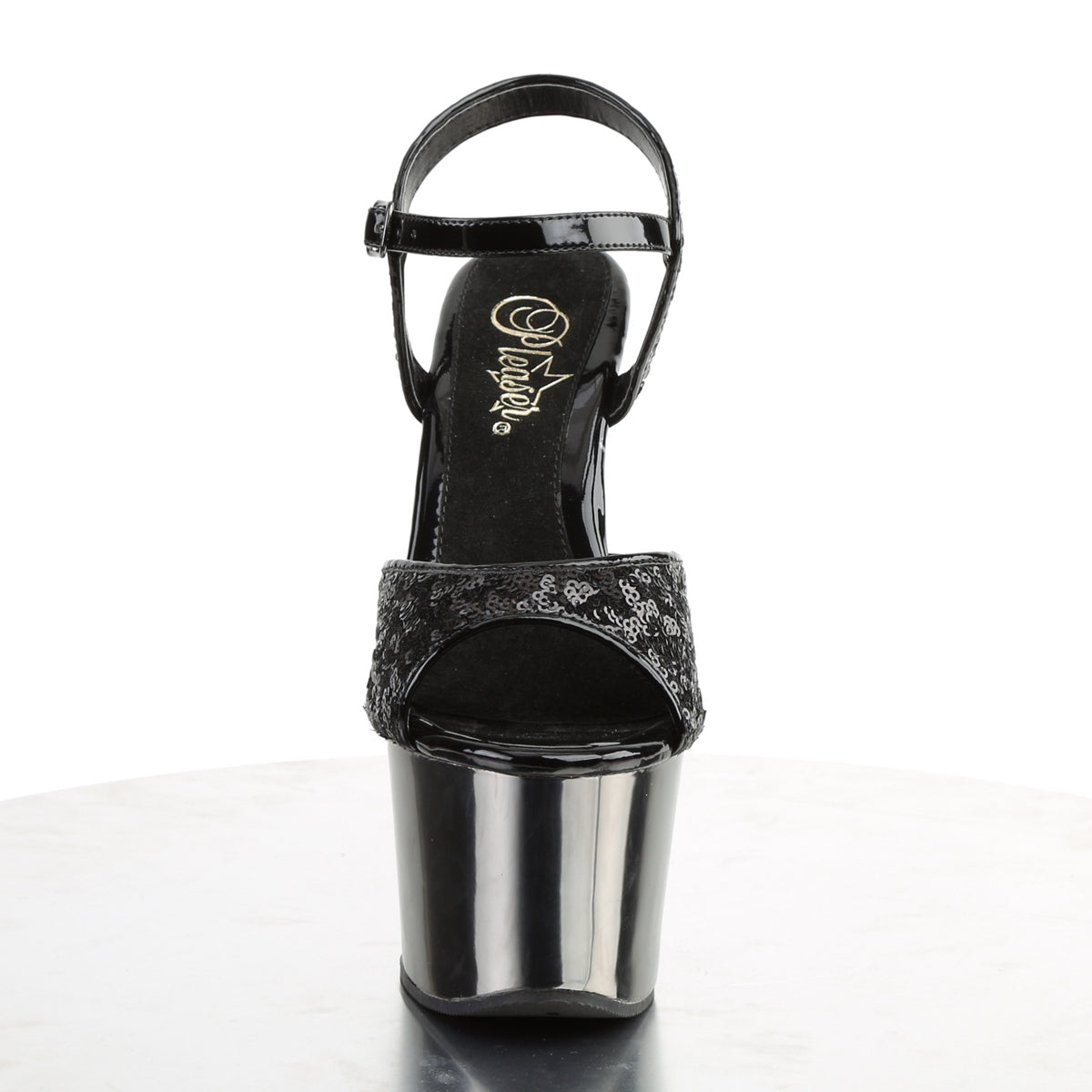 | Name | Pleaser Womens Sandals SKY-310SQ Blk Sequins/Pewter Chrome |