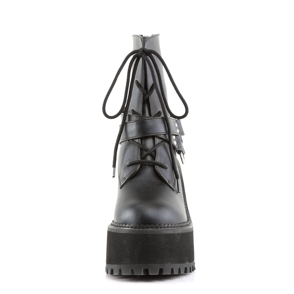 DemoniaCult Womens Ankle Boots ASSAULT-101 Blk Vegan Leather