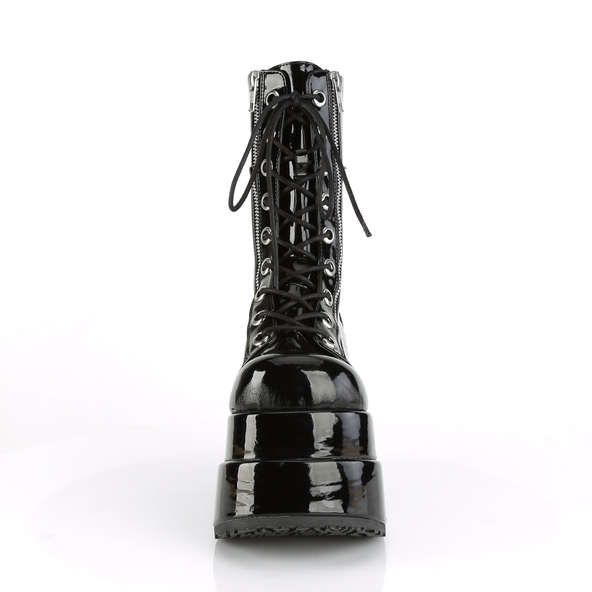 Additional Description 4 1/2"" (114mm) Tiered Platform Lace-Up Front Mid-Calf Boot Featuring Outer & Inner Metal Zip Closure