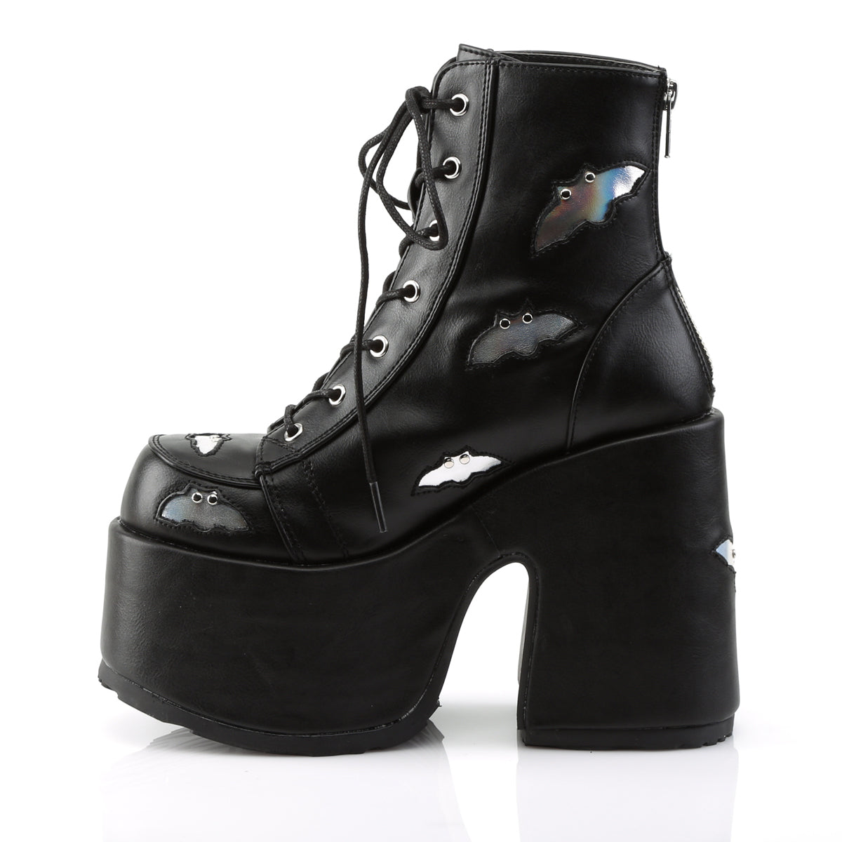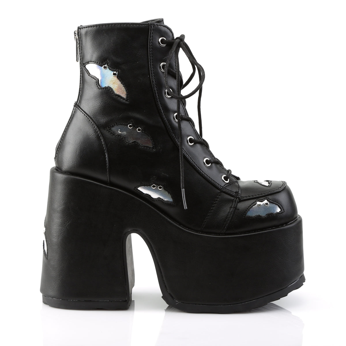 Name DemoniaCult Womens Ankle Boots CAMEL-201 Blk-Slv Hologram Vegan Leather
