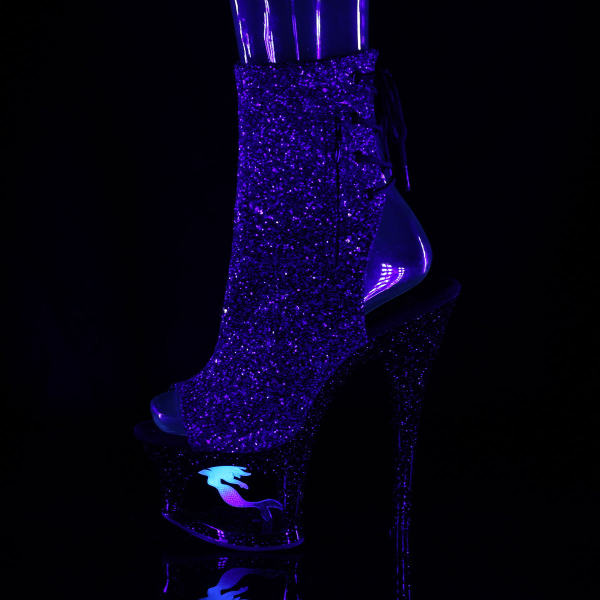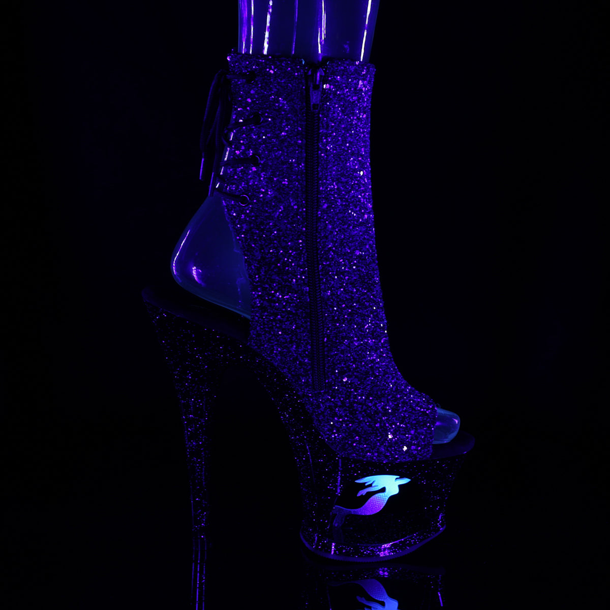 Pleaser Womens Ankle Boots MOON-1018MER Purple-Blk Ombre Glitter/Blk