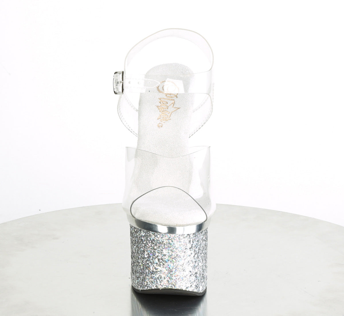 Pleaser Womens Sandals ESTEEM-708CHLG Clr/Slv Chrome-Multi Glitter