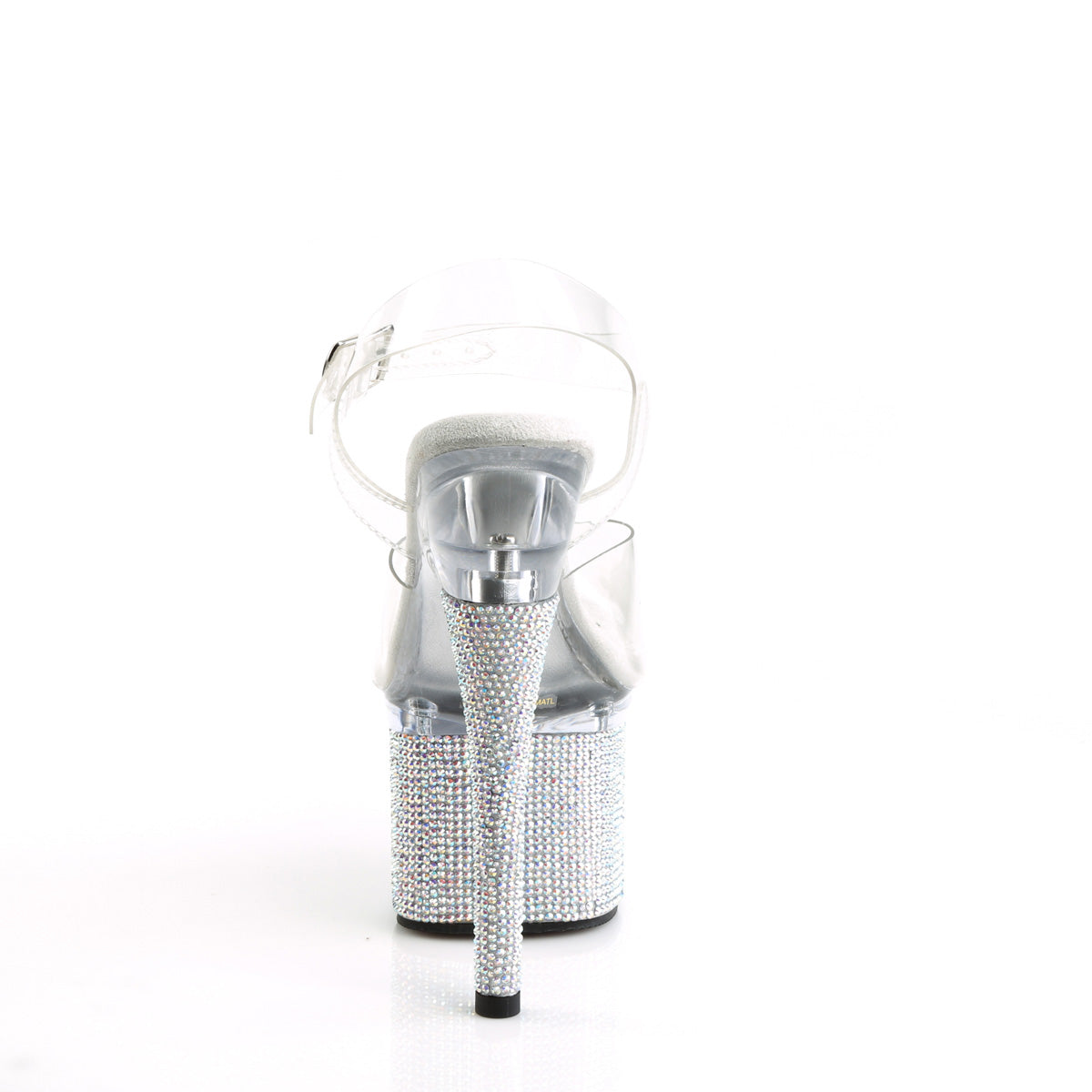 Additional Description 7"" (178mm) Heel, 3"" (76mm) Platform Ankle Strap Sandal Featuring AB Rhinestones Encrusted All-Over the Entire Platform Bottom