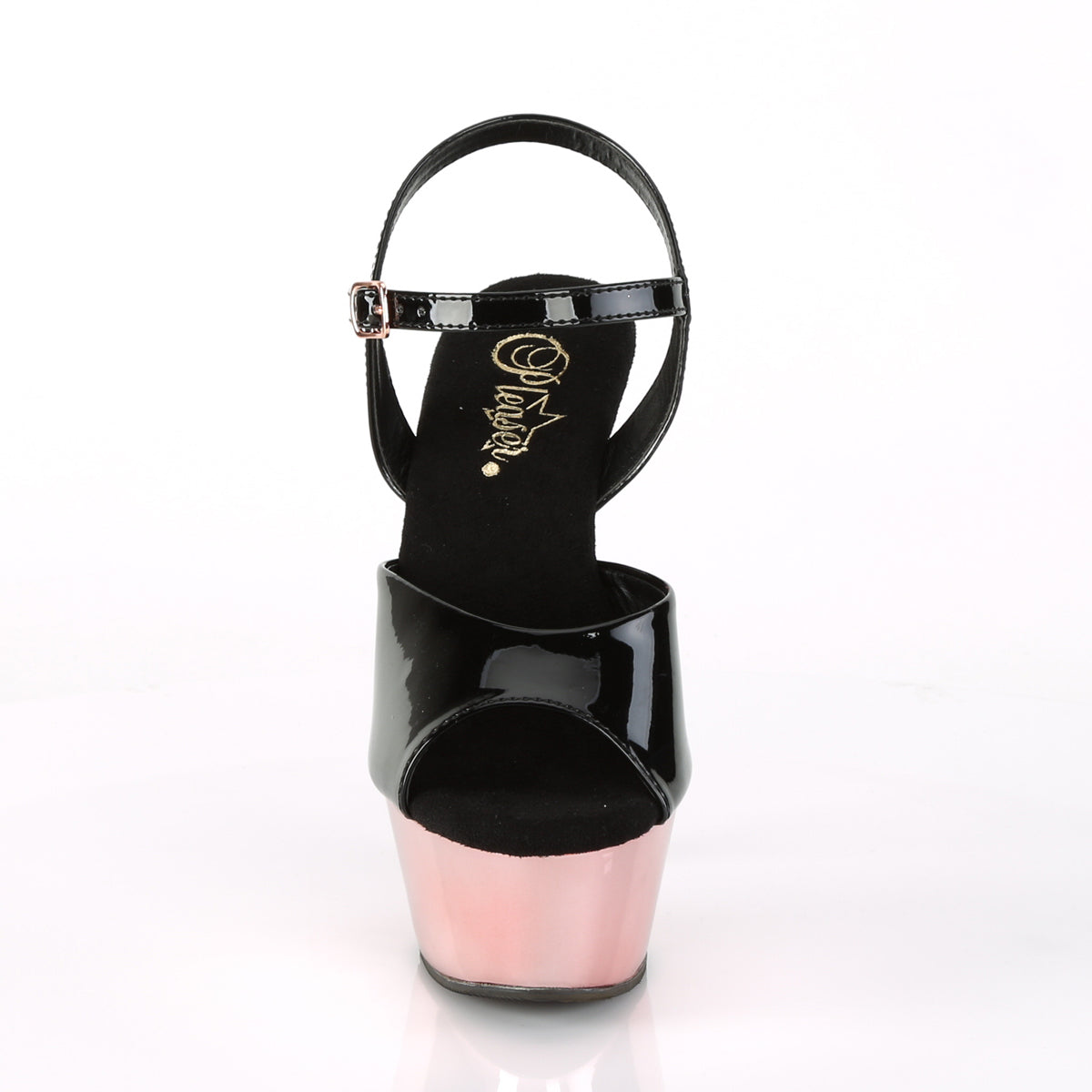 Pleaser Womens Sandals KISS-209 Blk Pat/Rose Gold Chrome