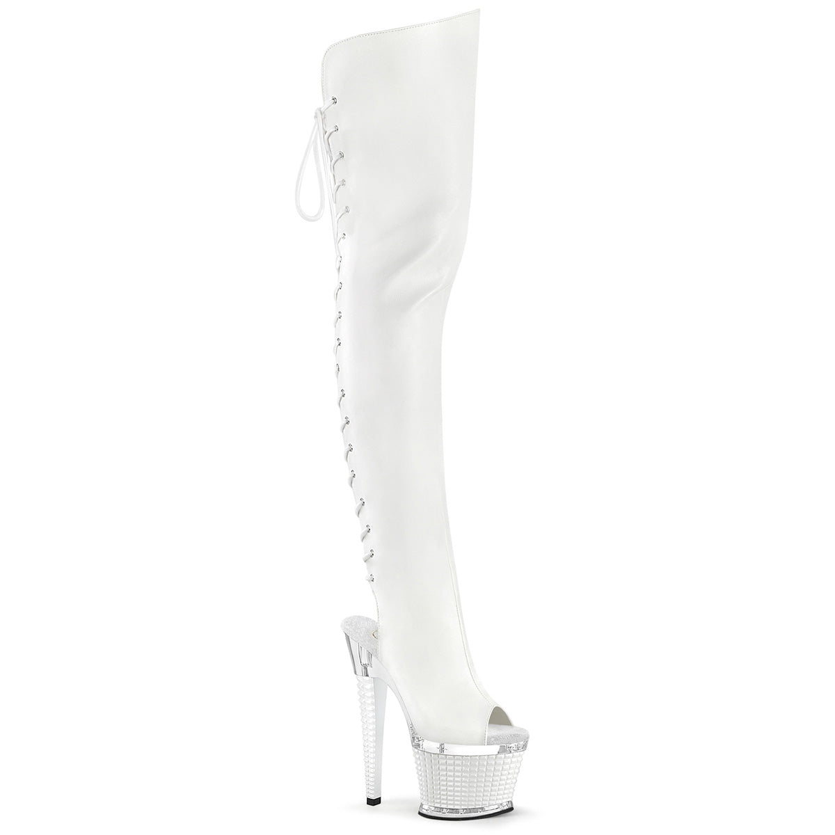7"" (178mm) Heel, 3"" (76mm) Textured PF Open Toe/Heel Lace-Up Back Thigh High Boot, Full Length Inner Side Zip Closure