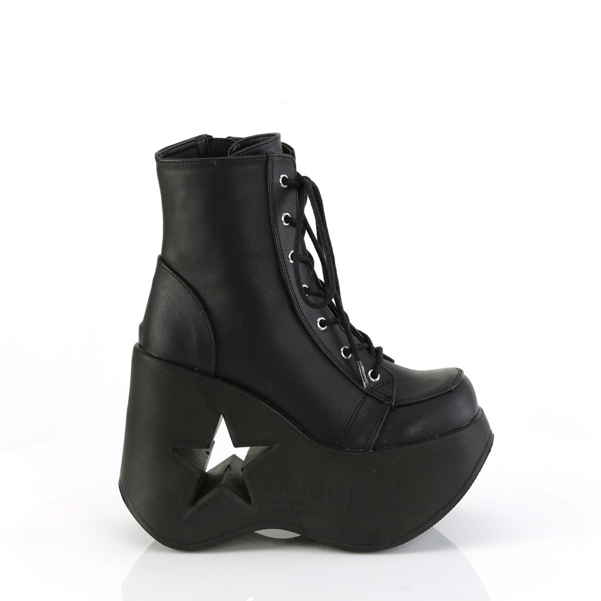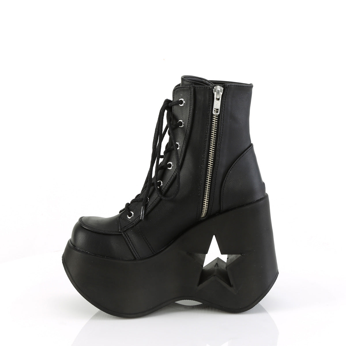 Additional Description 5"" (127mm) Star Cutout Platform Wedge Lace-Up Ankle Boot, Inner Side Metal Zip Closure