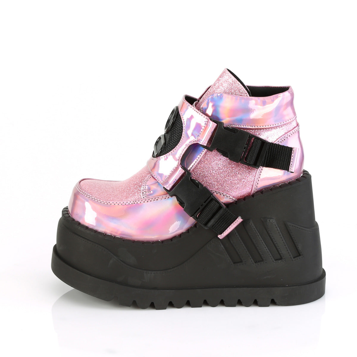 Name DemoniaCult Womens Ankle Boots STOMP-15 Pink Hologram-Glitter