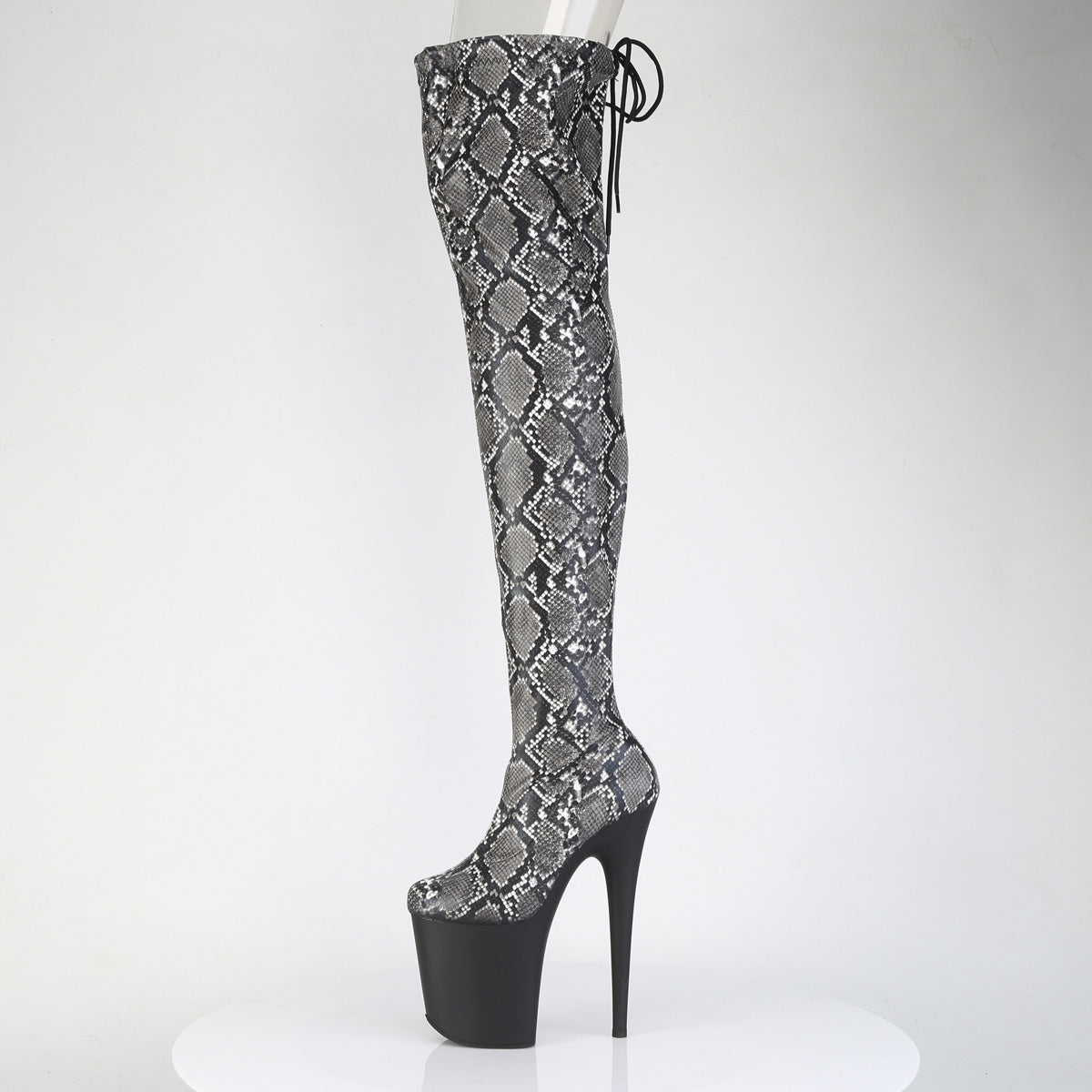 | Additional Description | 8"" (200mm) Heel, 4"" (100mm) Platform Platform Stretch Snake Print Pull-On Thigh Boot w/Rear Tie Fastening |