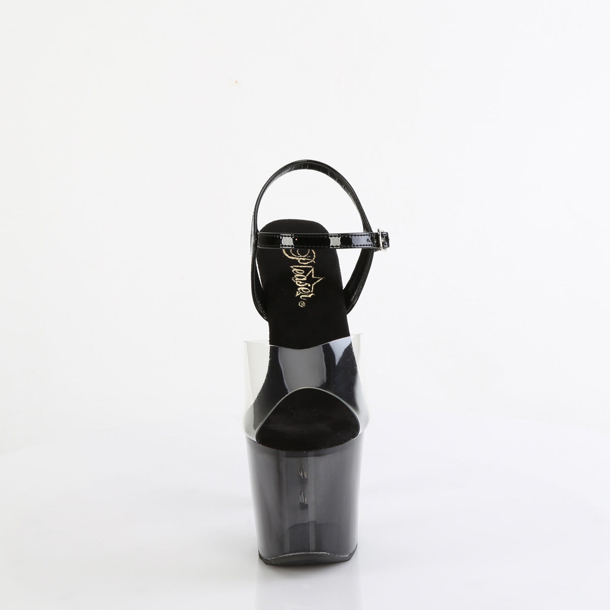 | Additional Description | 7"" (178mm) Stacked Heel, 2 3/4"" (70mm) Platform Ankle Strap Sandal Featuring Black/Clear Ombre Platform Bottom |
