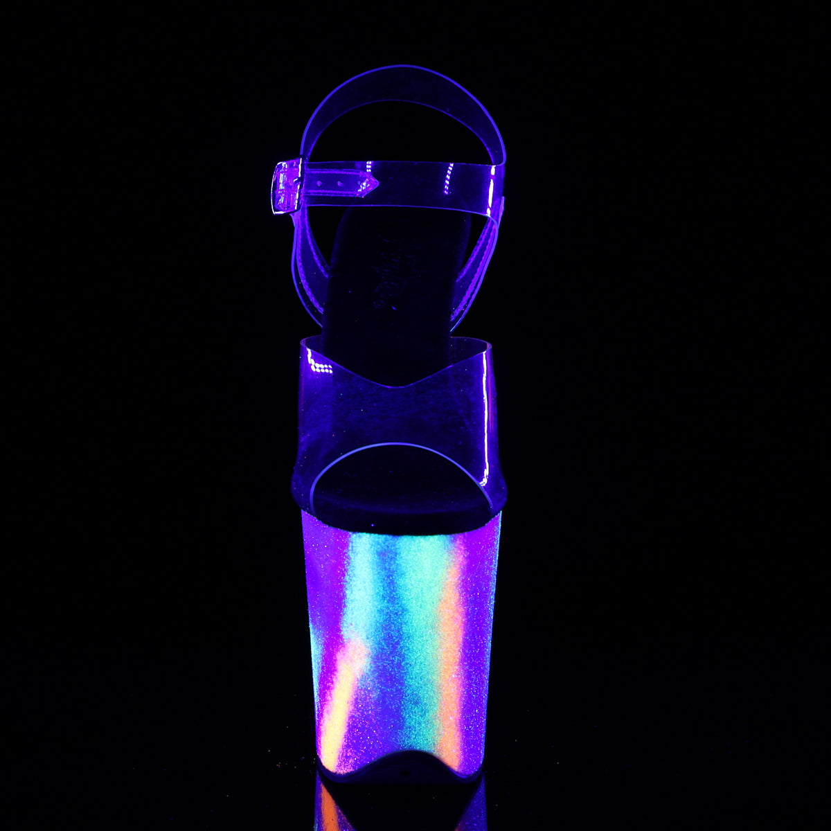 8"" (200mm) Heel, 4"" (100mm) Platform Ankle Strap Sandal Featuring Blacklight Reactive Galaxy Effect Platform Bottom |
